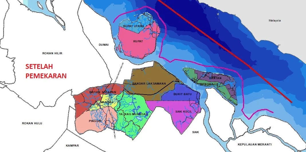 PETA ADMINISTRASI KABUPATEN BENGKALIS SETELAH PEMEKARAN DENGAN 3 TAMBAHAN KECAMATAN BARU